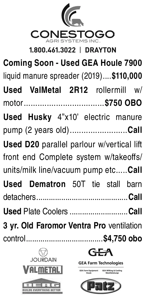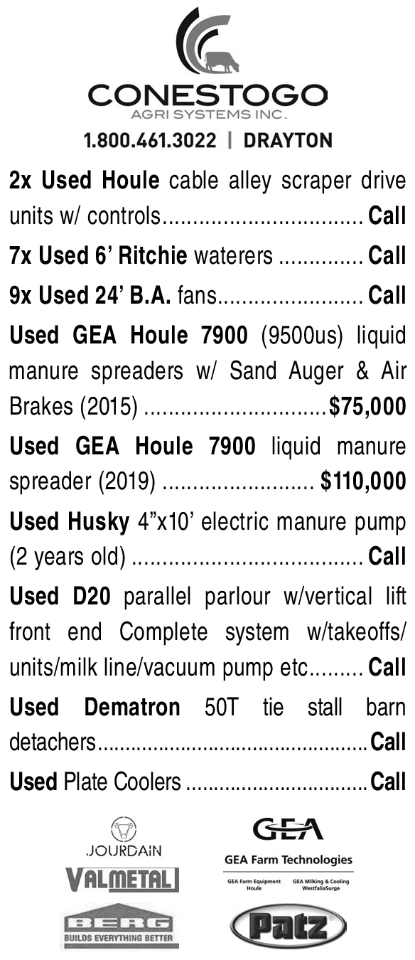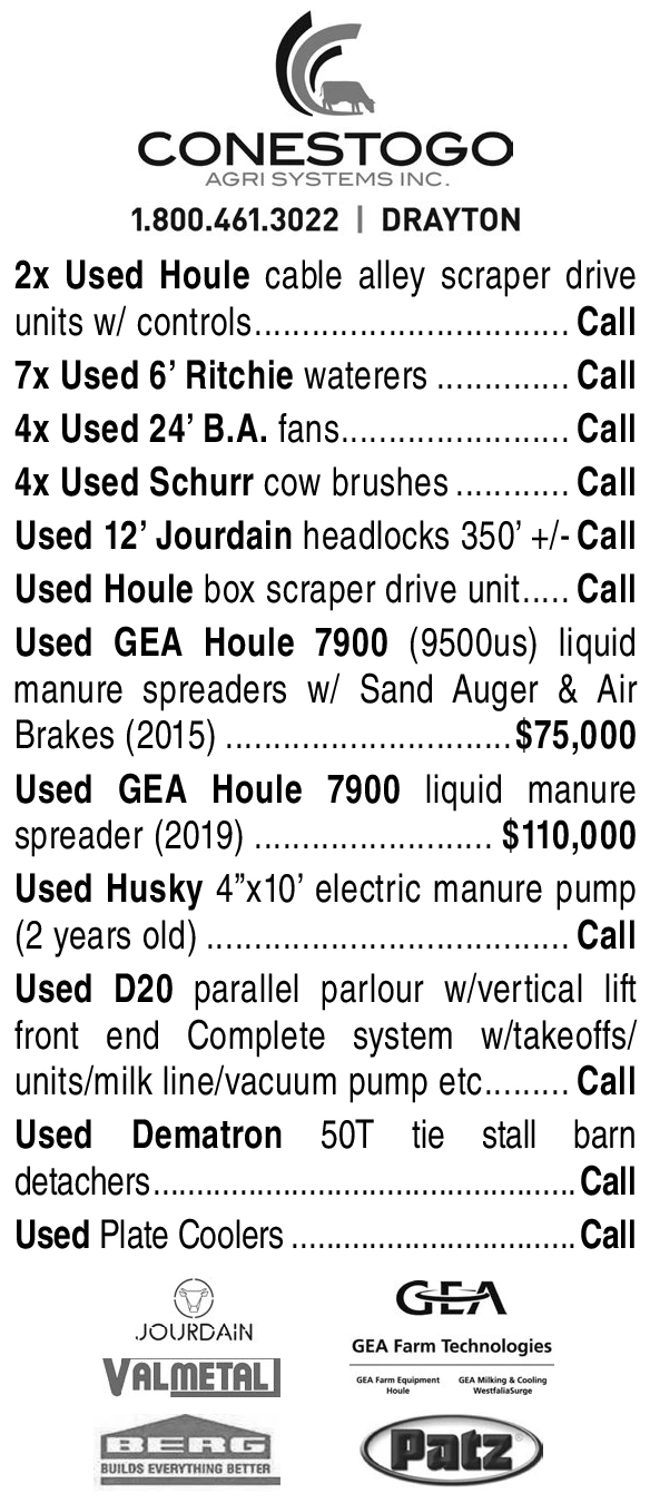 New and Used Equipment Conestogo Agri Systems Inc New and Used Equipment Call Us Today (519) 638-3022 Our New and Used Equipment